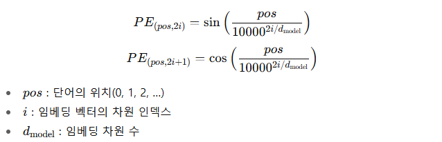 - 덧셈 연산 시에 임베딩과 Positional Encoding은 동일한 차원을 가져야 한다.